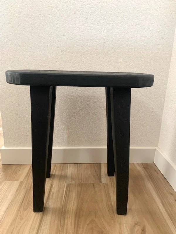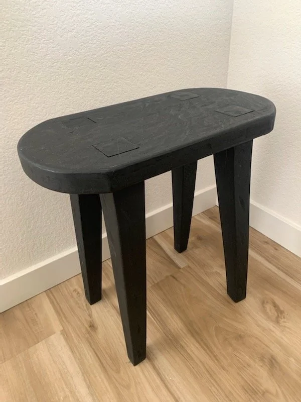 This stool, a mod take on traditional Bamileke style stools, makes for a cool side table or occasional stool. Great addition to a mid-century, modern or eclectic space to add some texture or another wood tone. (Black matte).